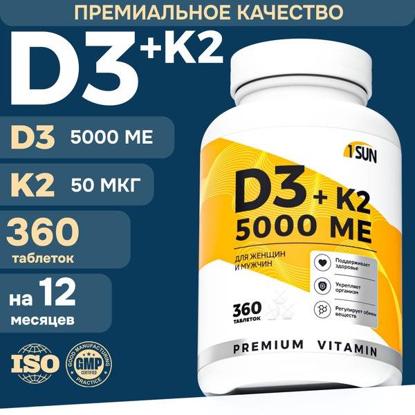 ONE SUN's Vitamin D3 & K2 5000 IU supplement provides a powerful combination of essential vitamins for optimal health. This high-potency formula contains 5000 International Units (IU) of Vitamin D3 and Vitamin K2, working synergistically to support numerous bodily functions.
