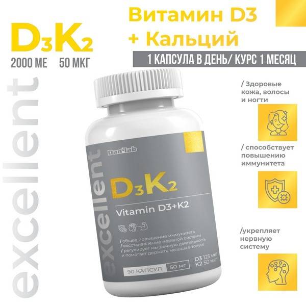 Keywords: Vitamin D3, Vitamin K2, Vitamin D3 K2, bone health, osteoporosis, vascular health, cardiovascular health, immune support, dietary supplement, supplement, DaniLab, 90 capsules, Menaquinone-7, Cholecalciferol, calcium absorption, bone density, strong bones, healthy blood vessels, immune system booster, bioavailable Vitamin D3.
