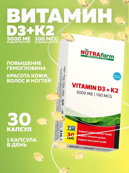 Nutrafarm's Vitamin D3 + K2 supplement offers a powerful synergy of essential vitamins to support overall health and well-being for men, women, and children. This unique formula combines 5000 IU of Vitamin D3 – a high potency dose crucial for calcium absorption and maintaining healthy calcium levels – with Vitamin K2 (MK-7), the form most effective for directing calcium to bones and preventing arterial calcification.