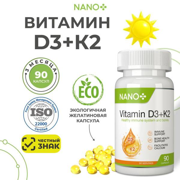 Description: Maintain optimal health with our high-quality Vitamin D3 & K2 supplement. This powerful combination supports bone strength, cardiovascular health, and a robust immune system. Each capsule provides 2000 IU of Vitamin D3 and 100 mcg of Vitamin K2, essential nutrients for calcium absorption and utilization. Unlike Vitamin D3 alone, our formula ensures calcium is directed to bones, minimizing potential vascular calcification. This is a crucial supplement for adults concerned about bone health, immune function, and overall well-being. Choose NANO+ for superior absorption and efficacy. 90 capsules per bottle.
