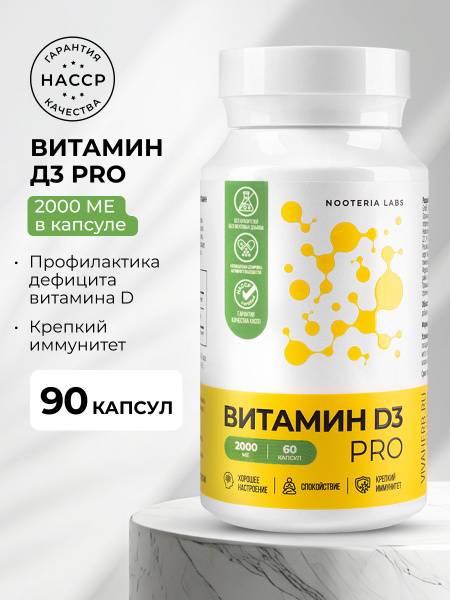 Boost your well-being with Vitamin D3 PRO 2000 IU from Nooteria Labs, a premium dietary supplement designed to fortify your immune system, enhance energy levels, and support bone health. Ideal for periods of low sunlight exposure, each easy-to-swallow softgel delivers a potent 2000 IU of Vitamin D3, meeting the daily needs of adults.