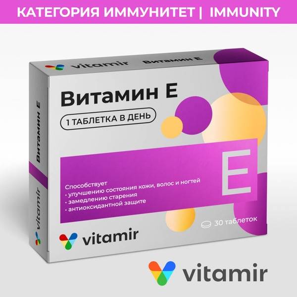 Keywords: Vitamin E, Tocopherol, Antioxidant, Skin Health, Anti-aging, Cardiovascular Health, Immune Support, Pregnancy, Muscle Recovery, VitaMir, Supplements, Health Supplements, Vitamins, 30 Tablets, Free Radicals, Collagen, Elasticity, Cholesterol, Blood Vessels, Immune System, Healthy Aging, Nutrient Deficiency