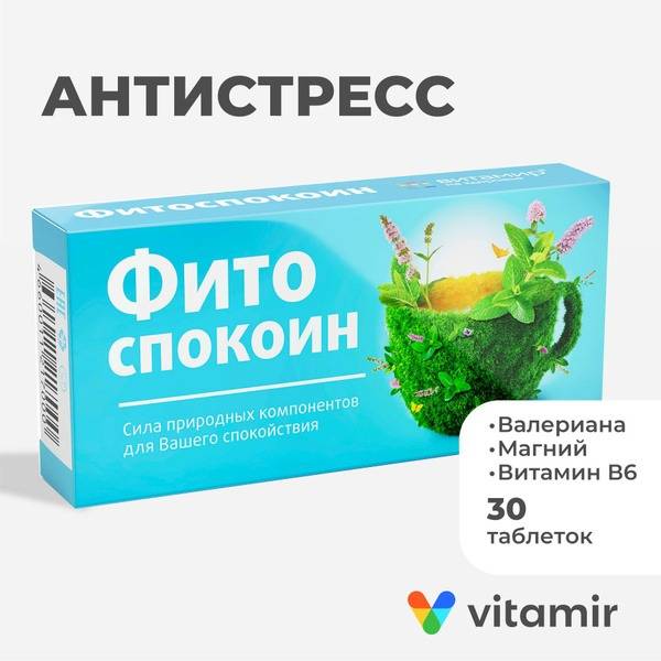 PhytoSpokoin VITAMIR (Valerian, Lemon Balm, Mint) - Natural Extract for Stress Relief (30 Tablets)