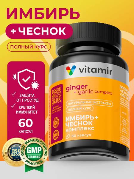 VITAMIR PRO Ginger & Garlic Complex meets stringent GMP, ISO, and "Honest Dosage" certification standards, ensuring high quality and safety. This product is a dietary supplement and is not intended to diagnose, treat, cure, or prevent any disease. Consult your physician before use, especially if you are pregnant, breastfeeding, or have pre-existing health conditions.