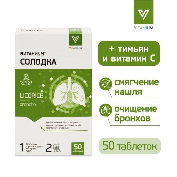 Vitanium Licorice is a natural cough suppressant and expectorant, combining licorice root and thyme extracts with Vitamin C for fast, effective relief. This unique blend helps soothe coughs, loosen phlegm, and reduce inflammation in the respiratory tract. Licorice's glycyrrhizic acid possesses anti-inflammatory and expectorant properties, while thyme promotes mucus thinning and has antibacterial effects. Vitamin C boosts immunity and speeds recovery. Just two tablets daily provide soothing relief from dry, irritating coughs associated with colds, bronchitis, and other respiratory ailments. Experience the natural power of Vitanium Licorice for a healthier respiratory system. 50 tablets.