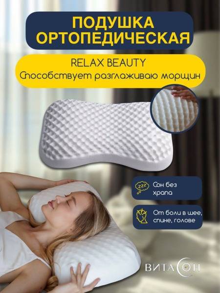 Experience luxurious comfort and support with the Vitason Relax Beauty Orthopedic Pillow. This 59x34cm white pillow features a unique memory foam design with varying heights (8cm in the center, 10cm at the edges) to perfectly cradle your head and neck throughout the night. Its ergonomic shape promotes healthy blood circulation, minimizing morning stiffness and leaving you feeling refreshed and energized. One side boasts a textured surface that provides gentle massage points, stimulating blood flow, improving muscle tone, and promoting deeper, more restful sleep. Made with high-quality, medically approved memory foam (registered in the Russian Federation), the Relax Beauty pillow is more than just comfortable; it's designed to enhance your well-being. Enjoy the revitalizing effects of a truly supportive and therapeutic pillow.