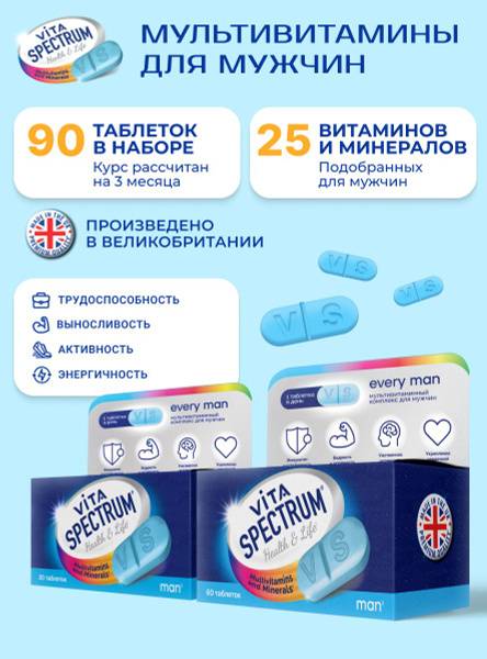 Boost Your Vitality with Vitaspectrum Men's Multivitamin & Mineral Complex. Formulated with a comprehensive blend of vitamins and minerals tailored to men's unique daily needs, Vitaspectrum supports overall health and well-being. This daily supplement promotes: