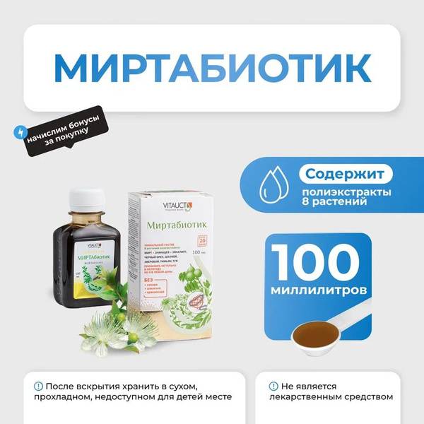 Vitauct Mirtabiotic 100ml offers natural support for a healthy gut microbiome. This potent blend of probiotics, prebiotics, and herbs promotes digestive balance, strengthens immunity, and contributes to overall well-being. Experience the benefits of improved digestion, increased energy, and a healthier gut with Vitauct Mirtabiotic. Perfect for those seeking natural gut health solutions.