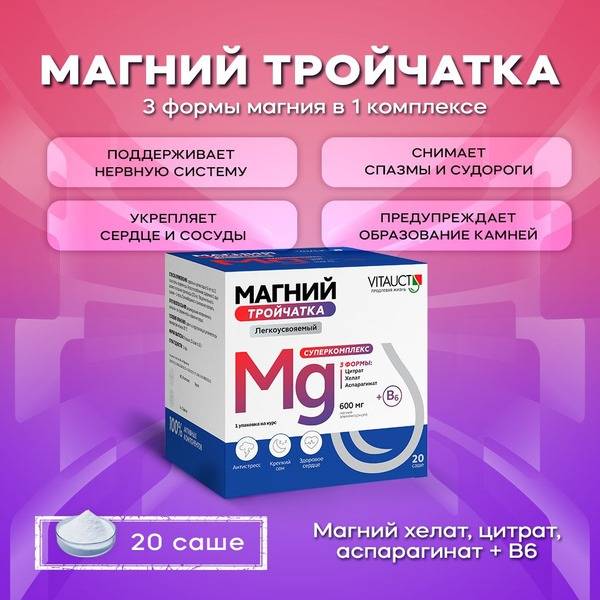 VitaUkt Magnesium Triple Action combines three highly bioavailable forms of magnesium – citrate, bisglycinate, and aspartate – with vitamin B6 for enhanced absorption and utilization. Magnesium is a crucial mineral vital for numerous bodily functions, impacting muscle and bone health, cardiovascular and nervous system function, vitamin B absorption, blood clotting, and digestive health. This unique formula leverages the superior absorption rates of magnesium citrate (highly soluble and easily digested), magnesium bisglycinate (a superior chelate form with high bioavailability), and magnesium aspartate (which aids in intracellular magnesium transport). Vitamin B6 further enhances magnesium absorption and utilization, addressing potential deficiencies often seen together. Experience improved energy levels, reduced stress and anxiety, better sleep, and support for healthy muscle function, cardiovascular health, and overall well-being. This potent blend helps alleviate symptoms such as muscle cramps, headaches, fatigue, and supports the management of conditions like chronic fatigue syndrome, insomnia, and inflammation.