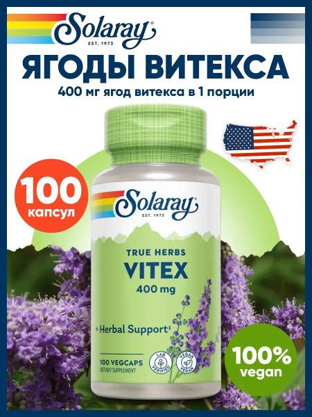 Discover the natural power of Solaray Vitex Berry 400mg, a premium supplement featuring 100 capsules designed to support women's health, promote hormonal balance, and ease menopause symptoms.