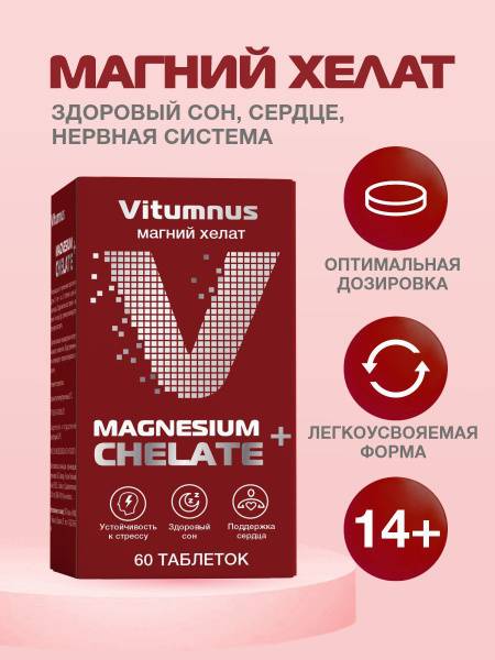 Support your body's natural stress response, muscle function, healthy sleep, and cardiovascular health with Vitumnus Magnesium Chelate. Our 1400mg tablets provide superior absorption for effective relief from muscle cramps and spasms. Experience the benefits of optimal magnesium levels.