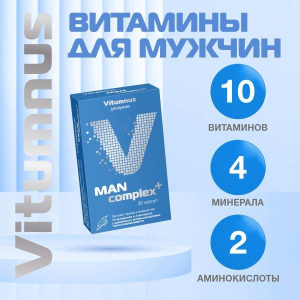 Men's multivitamin, Vitumnus, energy booster, stress relief, cognitive enhancement, male fertility, vitamins, minerals, amino acids, herbal extracts, Gotu Kola, Rhodiola Rosea, Green Tea, L-Carnitine, L-Taurine, B vitamins, Vitamin A, Vitamin C, Vitamin E, Zinc, Selenium, Copper, Iodine, male health supplement, dietary supplement, 600mg, 30 capsules.