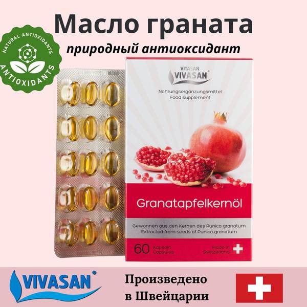 Description: Backed by numerous studies, Vivasan Pomegranate Seed Oil Capsules deliver a potent dose of nature's most powerful antioxidants. Rich in punicic acid (Omega-5), this oil promotes healthy brain circulation, improving memory and cognitive function. It supports ATP synthesis, reduces cellular inflammation, and may help protect against the development of cancerous growths. Pomegranate seed oil boasts superior bioavailability compared to other fruit extracts, with a 95% absorption rate—significantly higher than others containing polyphenols. Each capsule contains 705mg of pure oil. Take one capsule daily with a meal, swallowing whole with sufficient water.