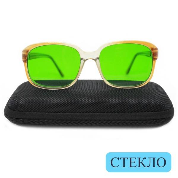 Protect your eyes from harmful UV rays with Vizzini 0003 green glass glaucoma glasses. Designed for individuals with glaucoma, these glasses alleviate eye strain and muscle fatigue caused by bright light and prolonged screen time. Unlike tinted sunglasses, which can worsen symptoms, these specialized glasses offer gentle protection. Ideal for sunny days, snowy conditions, computer work, TV viewing, and using electronic devices, they help prevent further eye strain and reduce the risk of developing strabismus. The lenses are made of high-quality glass for superior clarity and durability. Includes a protective case.