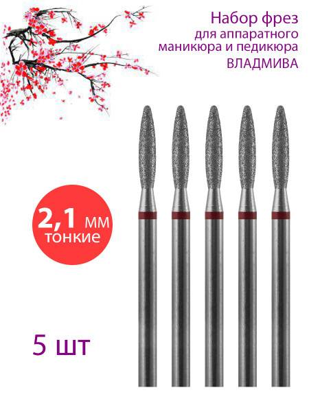 - VladMiVa Diamond Nail Drill Bit for Manicure & Pedicure, Cuticle, D-2.1mm, Fine Grit (Red Stripe), 5 Pcs.