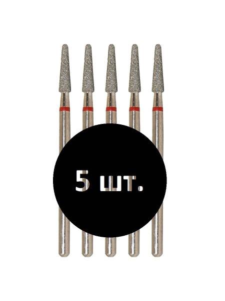 Durable diamond nail bit by VladMiVa, shaped as a rounded cone with a fine 025 red grit. Designed for professional manicure and pedicure use, this dental burr is excellent for cuticle care, gentle skin exfoliation, sidewall and sinus cleaning, and natural nail preparation for overlays. Article 856.104.194.100.025.
