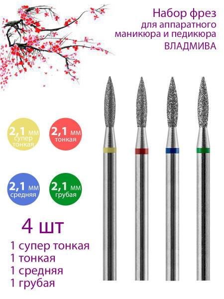 Experience superior nail and cuticle care with the VladMiVa diamond flame (drop) nail drill bit. Featuring distinct grit levels indicated by yellow, red, blue, and green coatings, this versatile bit is engineered for both professional and at-home use.