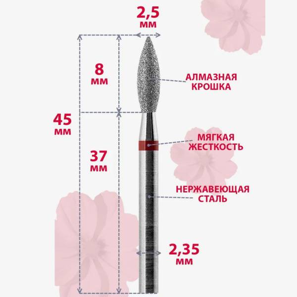 Achieve flawless nails with the Vladmiva Diamond Flame Bit, expertly designed for safe cuticle and sidewall refinement in both manicures and pedicures. This fine-grit (red band) flame-shaped bit, measuring 2.5mm, functions similarly to cuticle nippers, offering precise control for delicate nail work.