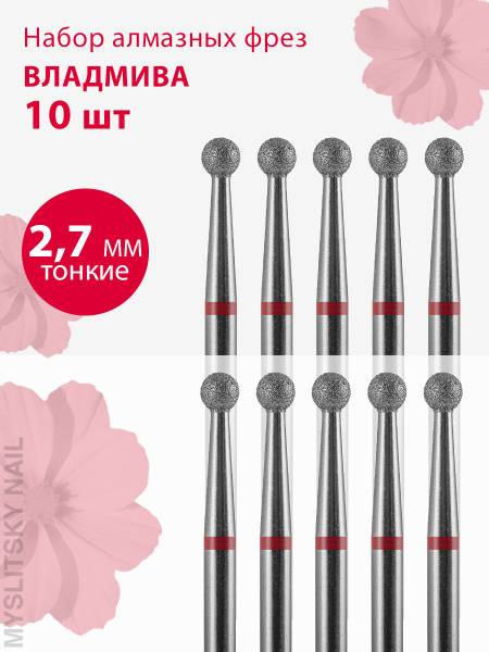 Discover the Vladmiva Diamond Ball Nail Bit, an essential tool for professional and at-home manicure and pedicure treatments. This fine-grit (red stripe) diamond bit, with its D-2.7mm diameter and ball shape, is expertly designed for safe and precise cuticle and sidewall refinement, offering an alternative to cuticle nippers.