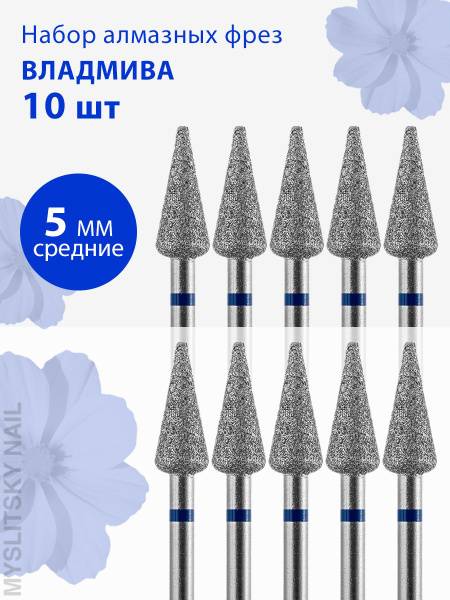 Achieve a flawless manicure and pedicure with the Vladmiva Diamond Nail Drill Bit. This versatile, medium-grit (blue stripe) rounded cone bit, with a 5.0mm diameter, is expertly designed for the safe and efficient refinement of sidewalls and cuticle areas, offering a precise alternative to cuticle nippers. In pedicure applications, this diamond-coated nail drill bit excels at smoothing and buffing small sections of heel skin and calluses.