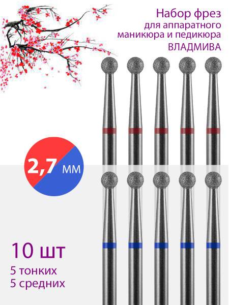 Achieve flawless nail and cuticle care with the VladMiVa Diamond Nail Drill Bit Set. This professional-grade collection features 2.7mm diameter ball-shaped diamond bits, ideal for both manicure and pedicure applications.