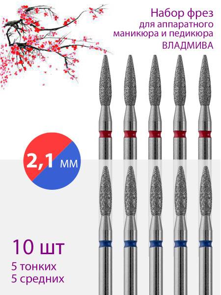 VladMiVa Diamond Nail Bit for Manicure & Pedicure - Cuticle Care Set, D 2.1mm, Fine/Medium, 10 Pack, 11 243 021P