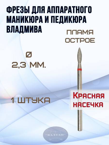 </section> <hr> <section>Elevate your nail services with the VladMiVa diamond nail drill bit, expertly designed for e-file manicures and pedicures. Its sharp flame shape, combined with a fine grit abrasive, delivers precise and efficient cuticle work and nail preparation. The robust stainless steel base is enhanced with a dense, multi-layered natural diamond coating, electroplated onto medical-grade steel for unparalleled cutting power and longevity. Manufactured in Russia to the highest quality benchmarks, this bit guarantees reliable performance, excellent durability, and effortless disinfection. ISO 856.104.243.080.023, Red Band (40-80) – Fine Grit.