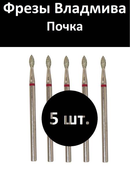 High-quality diamond nail and pedicure bit (dental burr) in a kidney shape with a soft grit (red stripe). Article number: 856.104.254.050.023.