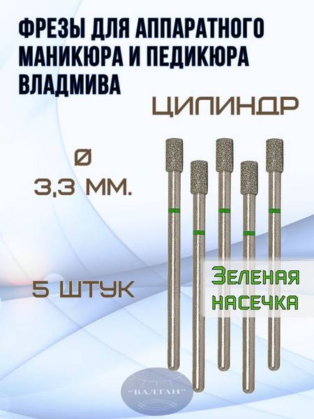 Experience superior performance with VladMiVa diamond carbide burs, expertly crafted for professional manicure and pedicure applications. These burs feature a durable stainless steel base and a precisely formed cylinder shape, ideal for efficient cuticle work and nail preparation.