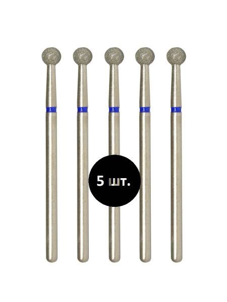 It features a classic ball or sphere shape, ideal for precise work. The bit is equipped with a medium grit marking, indicated by a blue band.
