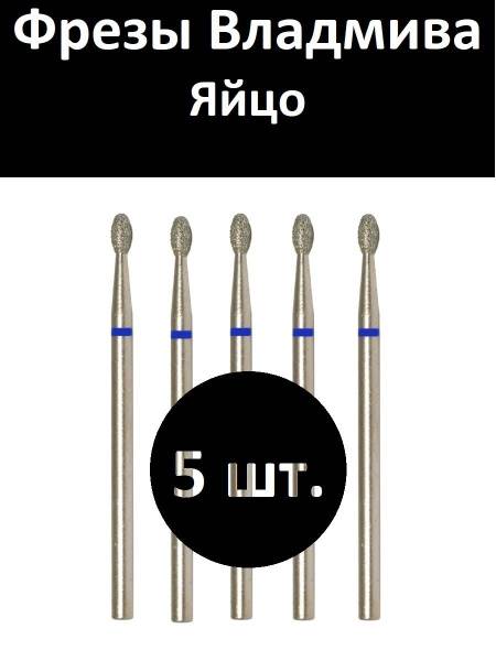 Professional diamond nail drill bit (dental bur) in an egg shape, medium grit (blue band). Article number: 866.104.277.042.023.