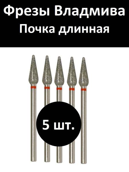 Diamond nail bit for manicure and pedicure (dental bur) in a long kidney shape, with fine grit (red band). Article number 856.104.266.120.040. This attachment is used in electric manicures and pedicures for polishing or delicate treatment of thin cuticles, small calluses, rough skin patches, treating the lateral nail fold, lateral sinuses, and for internal correction of natural nails during enhancements and nail piercing.