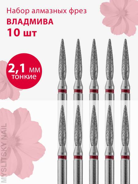 Vladmiva Diamond Nail Drill Bit - Flame Shape, Fine Grit (Red Stripe), for Manicure, Pedicure, Cuticle, D-2.1 (10-Pack)