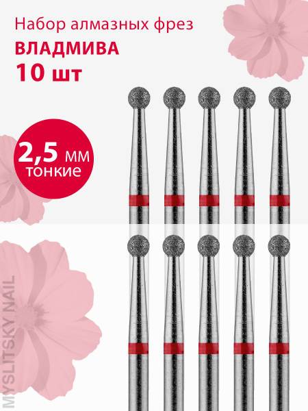 Vladmiva Diamond Nail Bit for Cuticle & Nail Care - Fine Red Grit Ball Burr (2.5mm) - 10 Pack