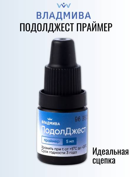 Apply a thin layer of Podoljest Primer to the prepared nail plate using the applicator. Allow to air dry for 60-80 seconds. Cure under a LED lamp (400-500 nm, 1000-2000 mW/cm²) for 20-40 seconds or a UV/LED lamp (350-400 nm) for 60-80 seconds. The nail surface should appear glossy; if it remains matte, reapply.