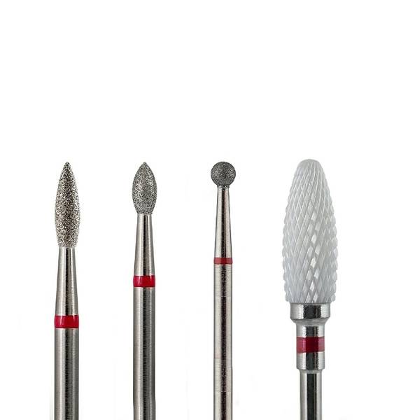 Vladmiva Diamond & Ceramic Nail Drill Bits: Flame, Bud, Sphere, Corn - Fine Grit Set