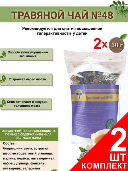 </section> <hr> <section>Support your child's well-being with Volgalad-48, a natural herbal tea blend designed to calm and relax. This formulation is beneficial for children aged 4 and above who exhibit hyperactivity, experience anxiety or fears, and for preventative use during stressful times. Experience its soothing effects that aid in falling asleep, reduce nervousness, and ease gastrointestinal issues like spasms and bloating. The carefully selected herbs work synergistically to promote overall tranquility.