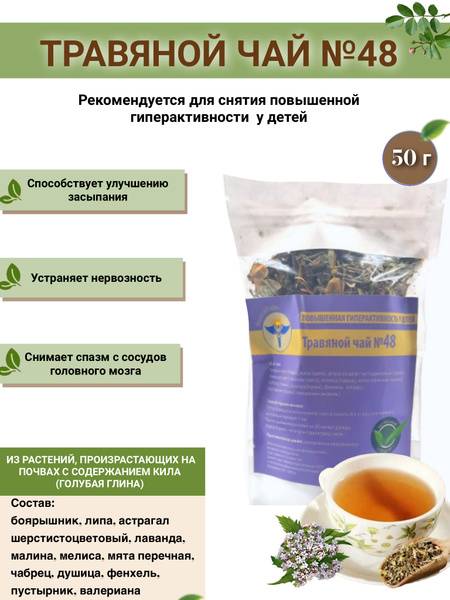 Discover a natural, gentle, and effective way to support your child's well-being. VolgaLad-48 herbal tea is specially formulated to help calm children experiencing hyperactivity, heightened anxiety, and to provide support during stressful periods (suitable for ages 4 and up).