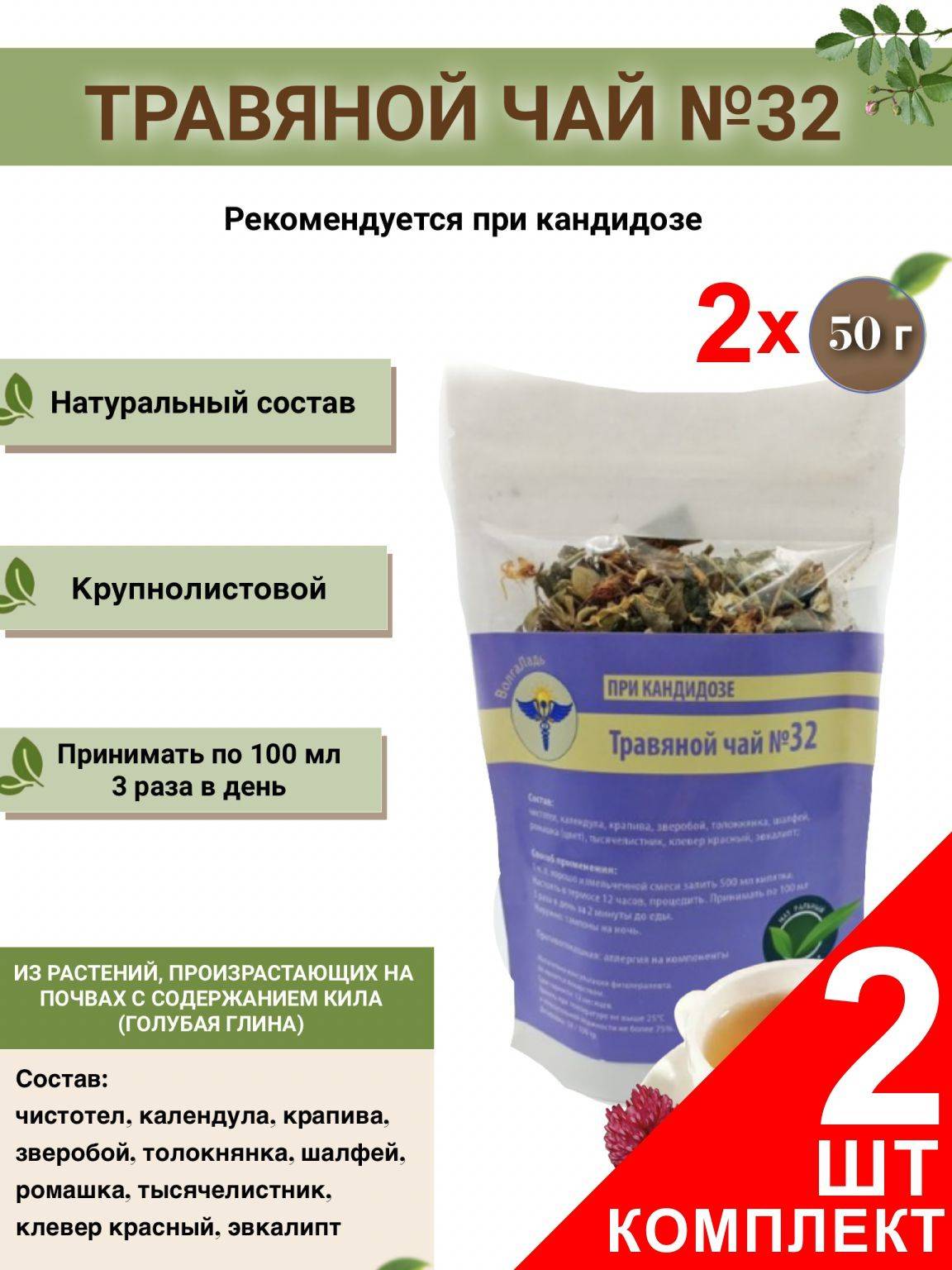 { "@context": "https://schema.org/", "@type": "Product", "name": "VolgaLadya Herbal Tea No. 32 for Candidiasis (2-Pack)", "description": "A traditional herbal blend traditionally used to support the body during candidiasis. Two convenient packs included.", "image": ["image1.jpg", "image2.jpg"], "brand": { "@type": "Brand", "name": "VolgaLadya" }, "offers": { "@type": "Offer", "priceCurrency": "USD", "price": "XX.XX", "availability": "https://schema.org/InStock" } }