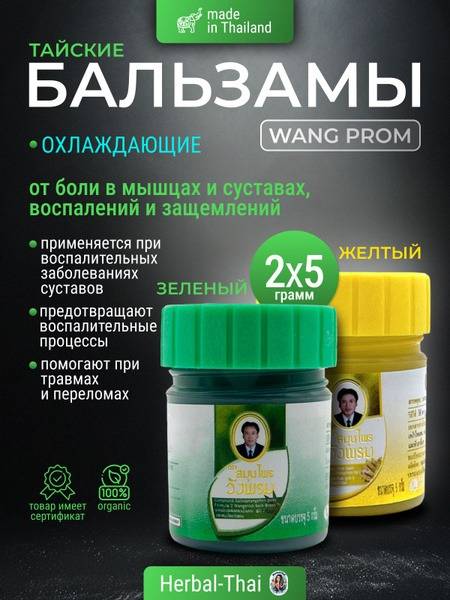 Wang Prom, Thai balm, green balm, yellow balm, pain relief, inflammation, muscle pain, sprains, strains, bruises, arthritis, rheumatism, osteoarthritis, back pain, joint pain, muscle aches, insect bites, burns, fractures, healing, recovery, massage balm, sports balm, athletes, active lifestyle, traditional Thai medicine, ginger balm, cooling balm, warming balm, herbal remedy, natural pain relief.