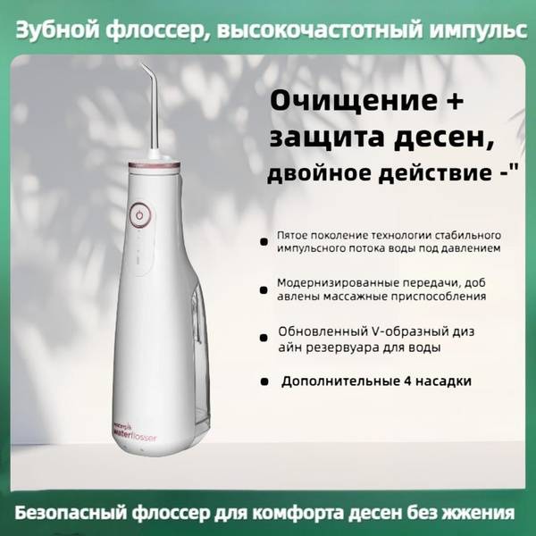 The Waterpik GS10PRO-12 cordless water flosser offers superior oral hygiene with its powerful yet gentle water stream. This advanced model features a 165ml water reservoir, three pressure settings (Gentle, Standard, Strong), and a quick 4-hour charging time via a 5V/1A adapter. An intuitive LED indicator displays the battery level. Utilizing 5th generation pulsating water technology with voltage stabilization, it delivers 1200 pulses per minute for deep cleaning, effectively removing 99.9% of plaque in just 3 seconds. The focused 0.66mm water jet reaches hard-to-clean areas like interdental spaces, pits, fissures, and below the gum line, reducing bleeding and improving gum health. The innovative V-shaped water reservoir minimizes water retention, and both the reservoir and tips are BPA-free. This versatile flosser includes a standard tip x2, orthodontic tip x1, plaque seeker tip x1, and a magnetic USB charging cable. Experience the difference of professional-level cleaning at home.