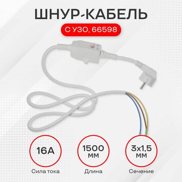 This high-quality 1.5m RCD cable, featuring a 30mA leakage current protection, is designed for water heaters up to 3kW (16A). Its robust construction includes a 3x1.5mm² cross-section and utilizes reliable "mama" type faston connectors. The cable features a convenient 1.35m length before the wire stripping point for easy installation. Built-in safety features include a "Test" button (simulates a current leak to trigger the RCD), a "Reset" button, and a power indicator light.