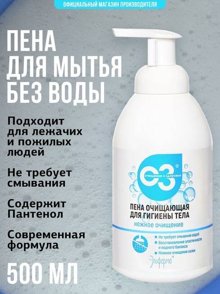 Waterless cleansing foam, dry shower, no-rinse cleanser, bedridden care, elderly care, intimate hygiene, travel hygiene, baby hygiene, panthenol, calendula, chamomile, skin irritation, moisturizing, wound healing, Elfarma, 500ml, gentle cleanser, no water needed, easy to use.
