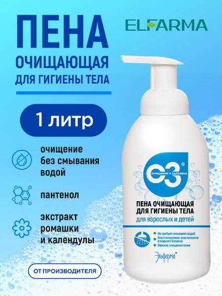 waterless cleansing foam, no water soap, bedridden hygiene, elderly care, travel hygiene, intimate hygiene, portable hygiene, cleansing foam, Elfarma, panthenol, calendula, chamomile, skin irritation, wound healing, moisturizing, antimicrobial, anti-inflammatory, 1000ml, 1 liter, body wash, no rinse, gentle cleansing.
