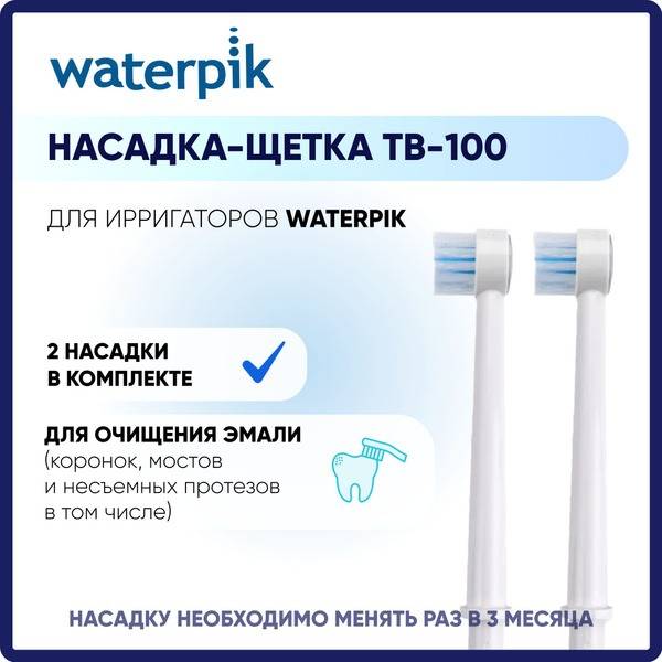 Description: The popular Waterpik TB-100 orthodontic brush tip uses a powerful water stream for effective cleaning, eliminating the need for toothpaste. Its soft bristles gently remove plaque and food particles from teeth and hard-to-reach areas between braces and teeth. While providing a thorough clean, it's often followed by brushing with a traditional toothbrush and toothpaste. For optimal hygiene and to prevent limescale buildup, replace the tip every three months as recommended by the manufacturer. This tip also offers a gentle gum massage, promoting healthy blood circulation. Compatible with Waterpik models WP-100, 112, 160, 450, 462, 560, 562, 563, 660, 672, 662, and 10.