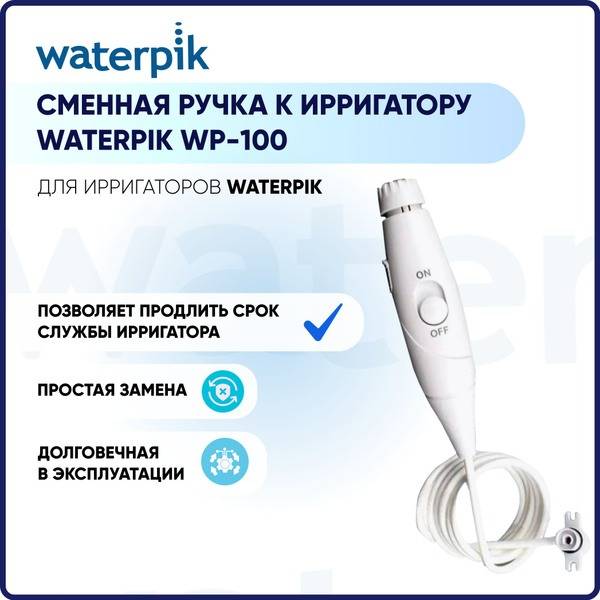 Maintain peak performance with the genuine Waterpik WP-100 Replacement Handpiece. This essential accessory ensures your Waterpik irrigator continues to deliver superior oral hygiene. Perfectly compatible with the WP-100 model, it guarantees a seamless fit and optimal functionality for comfortable and effective cleaning. Replace a worn or damaged handpiece and restore your oral care routine with ease. Simple installation and intuitive use allow for a quick return to healthy gums and teeth.