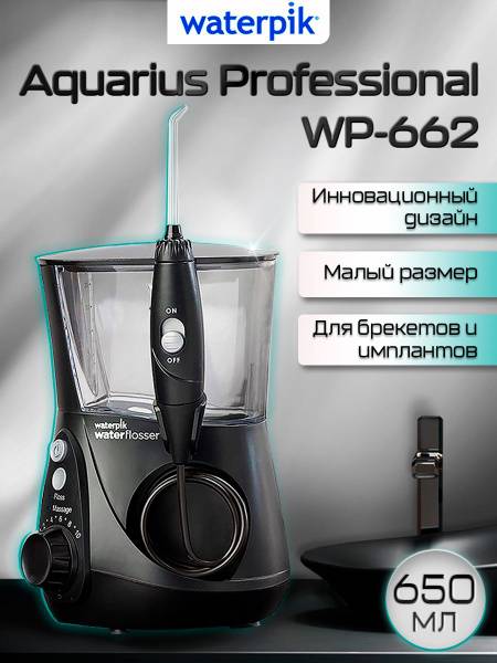 Experience the ultimate in oral hygiene with the Waterpik WP-662 Aquarius Professional Water Flosser. This top-of-the-line model boasts a sleek, black design and advanced features designed for superior cleaning and gum health. As the world's first water flosser manufacturer, Waterpik’s expertise is evident in this powerful yet compact device, based on the popular WP-100 model. Trusted by dentists and users alike, the WP-662 delivers unmatched performance and reliability.