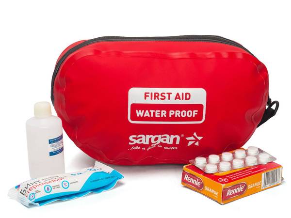 Description: The SARGAN "SANITARK" waterproof first-aid kit provides reliable protection for your essential medications, hygiene items, and other small necessities during outdoor adventures. Perfect for hiking, rafting, fishing, hunting, camping, and beach trips, this durable 2-liter PVC kit safeguards your contents from moisture, dust, dirt, sand, and snow. Its robust construction prevents deformation over time, and it includes a convenient attachment ring for easy carrying. (Medications not included).