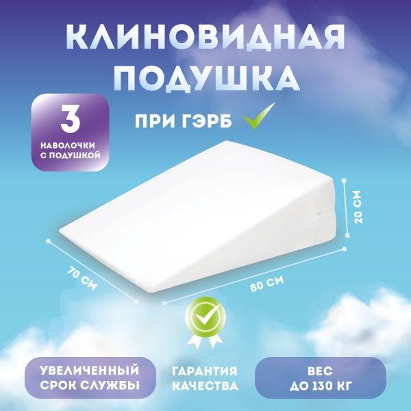 Description: Experience superior comfort and relief from GERD with our expertly designed wedge pillow. Its 15-degree incline significantly reduces (up to 95%) nighttime acid reflux and bile reflux into the esophagus, promoting better sleep and digestive health. Recommended for GERD treatment and prevention, this pillow also helps normalize heart function, reduce facial swelling, prevent sleep apnea, and may alleviate migraines and heartburn. Generously sized at 80 x 60-70 cm with a 20 cm high incline, it includes two extra pillowcases for added convenience and hygiene.