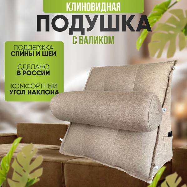 Keywords: wedge pillow, wedge pillow with roll, adjustable pillow, back support pillow, lumbar support pillow, reading pillow, TV pillow, bed pillow, sofa pillow, armchair pillow, light beige pillow, linen blend pillow, holofiber filling, ergonomic pillow, comfortable pillow, support pillow, adjustable roll, side pocket pillow, dry cleanable pillow, 52x22x50 cm pillow.